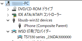 わたくしの場合、iPhoneはなぜか「libusb-win32devices」の中に入っていました。理由は分かりません。