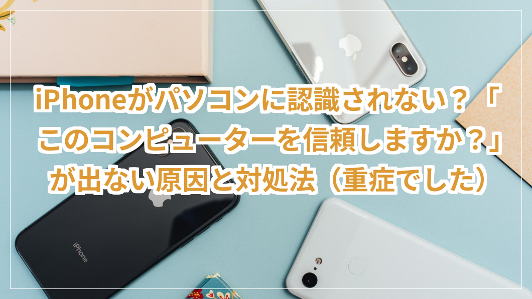 また、iPhoneとパソコンをつなげると、iPhone側に「このコンピューターを信頼しますか?」と尋ねてきますが、この表示もなし。